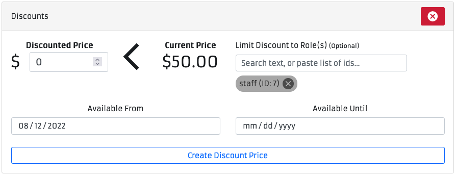 3. Enter the discounted price. This is the price that attendees will pay if they purchase the product, not how much the discount is.